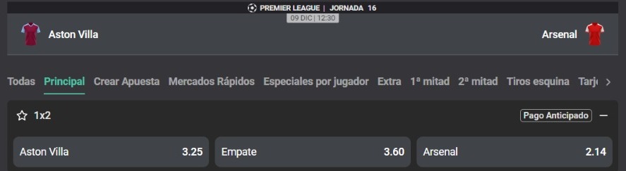 El Villa Park será testigo del partido más atractivo de la jornada europea. Aston Villa, tercero en la Premier, recibe al líder del campeonato el inglés, el Arsenal. Los ‘Villanos’ vienen de lograr un importantísimo triunfo en su estadio ante el Manchester City. Los dirigidos por Arteta se llevaron un triunfo sobre el final en su visita al Luton Town y siguen en lo más alto.
