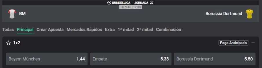 Bayern Múnich vs Dortmund: pronósticos y cuotas