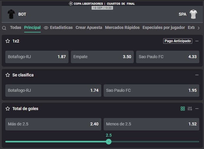 Por la ida de los cuartos de final Copa Libertadores, Botafogo recibirá a São Paulo en un partido emocionante. El Botafogo llega a esta fase tras haber eliminado a Palmeiras. Asimismo, São Paulo eliminó al siempre complicado Nacional de Uruguay. A continuación, conoce toda la información para apostar con las cuotas que te trae Atlantic City.
