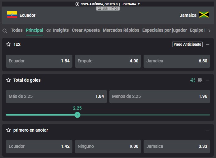 En un encuentro que marcará el inicio de la segunda ronda en la Copa América, la Selección de Ecuador se mide ante Jamaica en un partido correspondiente al grupo B del torneo continental. Ambas escuadras saldrán a buscar los tres puntos para avanzar en el torneo. A continuación, conoce toda la información para apostar con las cuotas que te trae Atlantic City.