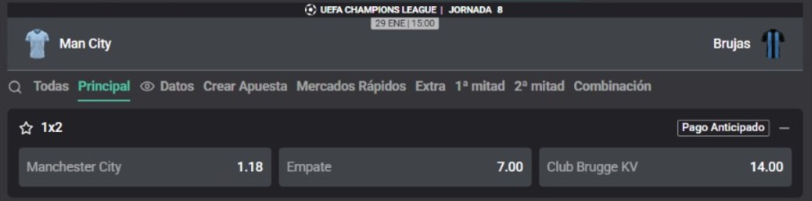 Manchester City vs. Brujas: pronósticos y cuotas