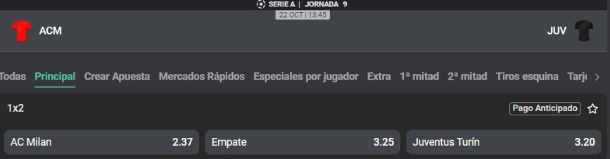 En un partido de alto voltaje por la punta de la Serie A, el Milan  vs Juventus por la fecha 9 del campeonato italiano. Los ‘Rossoneri’ son actuales escoltas de su rival en la ciudad, el Inter. Sin embargo, una victoria contra la ‘Vecchia Signora’ los haría volver a lo más alto del ‘Calcio’. Los dirigidos por Stefano Pioli han conseguido 4 victorias consecutivas, la última de ella ante Genoa por 1-0, con un agónico gol de Pulisic a los 87’. El Milan ganó 7 partidos y perdió sólo uno, en el derbi de la Madonnina por 5-1.
