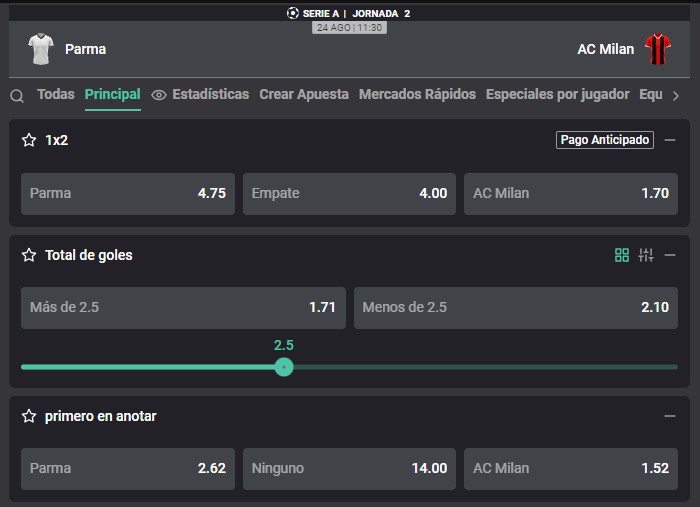 Parma vs. AC Milan se miden en uno de los duelos de la segunda jornada de la Serie A. El equipo de Paulo Fonseca busca iniciar la temporada con el pie derecho en busca de la conquista de la liga italiana. Parma busca dar el golpe en el inicio de la nueva temporada. A continuación, conoce las cuotas que trae Atlantic City y toda la información para realizar la mejor apuesta.