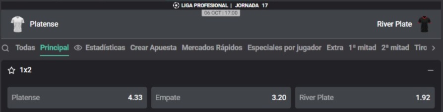 Por la fecha 17 de la segunda fase de la Liga Profesional Argentina, Platense recibirá a River Plate en el Estadio Ciudad de Vicente López. El Calamar marcha en la 15º posición con 20 puntos; mientras que el Millonario es octavo con 24 unidades. A continuación, conoce toda la información para apostar con las cuotas que te trae Atlantic City.