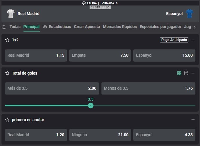 Real Madrid vs. Espanyol se miden en unos de los duelos correspondientes a La Liga de España. El equipo de Carlo Ancelotti continuar su racha ganadora en la liga española. El Espanyol se ubica en la 12° casilla con 7 puntos en La Liga. A continuación, conoce las cuotas que trae Atlantic City y toda la información para realizar la mejor apuesta.