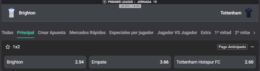 Partidazo en la Premier League. el Tottenham recibe al Brighton por la fecha 19 del torneo inglés. Los dirigidos por Postecoglu levantaron cabeza y han encadenado tres victorias consecutivas. Del otro lado, el panorama es totalmente distinto, el equipo de De Zerbi no gana hace tres fechas.