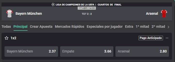 Bayern Múnich vs. Arsenal: pronósticos y cuotas