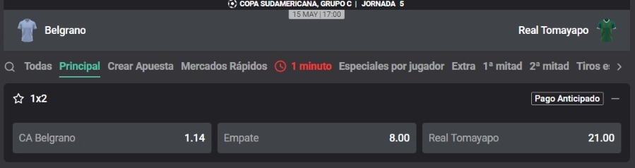 La fase de grupos del segundo torneo de clubes más importante del continente entra a su fase final. Por la fecha 5 de la Copa Sudamericana, Belgrano recibirá a Real Tomayapo. Los cordobeses son los líderes del Grupo C y una victoria en esta jornada les aseguraría, al menos, jugar el repechaje. El cuadro boliviano sólo ha sumado un punto en el torneo. A continuación, conoce toda la información para apostar con las cuotas que te trae Atlantic City.