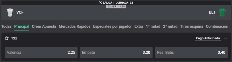 Duelo directo por la lucha de alcanzar puestos europeos en La Liga. El fútbol español se prepara para el inicio de la fecha 32 del torneo doméstico en el que Valencia y Betis se medirán. El equipo ‘Che’ viene de vencer a Osasuna a domicilio. Los sevillanos, por su lado, volvieron a la victoria ante el Celta luego de cuatro derrotas al hilo. Conoce las cuotas que trae Atlantic City y toda la información para realizar la mejor apuesta.