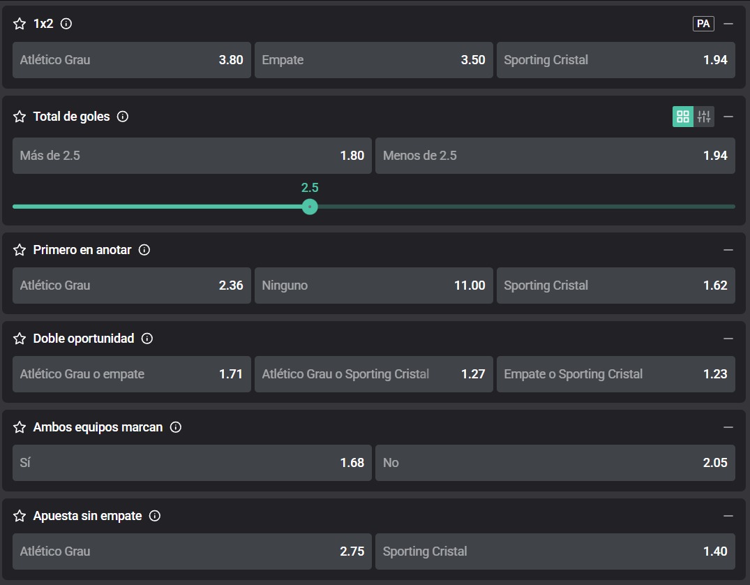 Por la fecha 19 del Torneo Clausura de la Liga 1, Atlético Grau vs. Sporting Cristal, en el estadio Campeones del 36. A continuación, conoce toda la información para apostar con las cuotas que te trae Atlantic City.