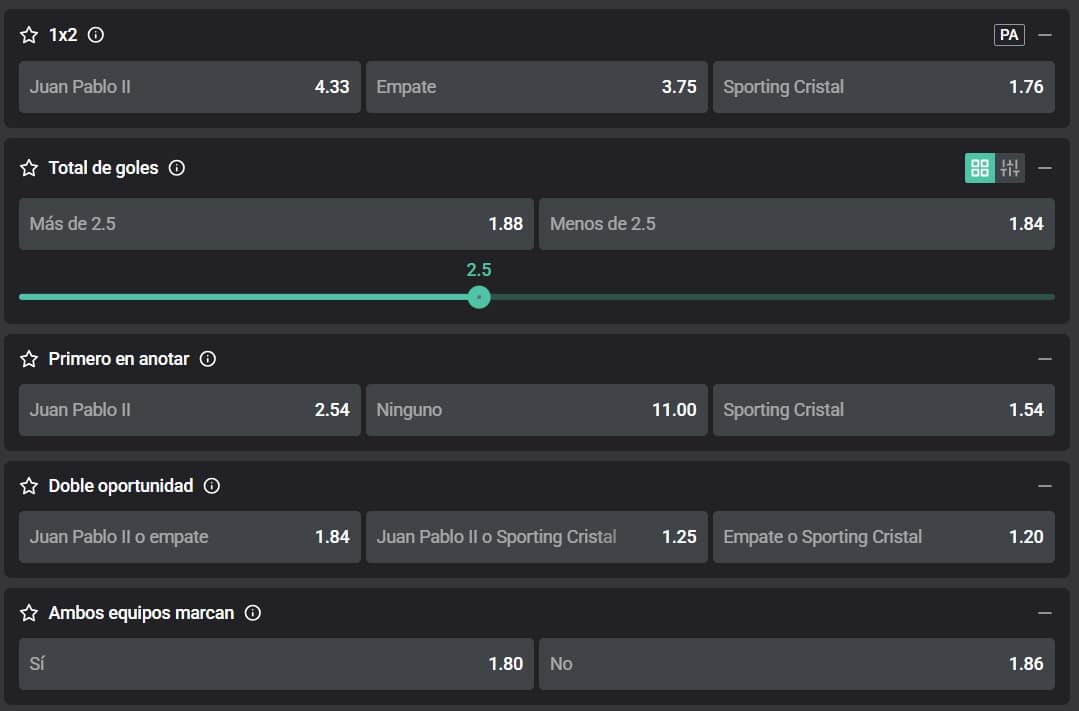 Por la fecha 10 del Torneo Clausura de la Liga 1, Juan Pablo II recibe a Sporting Cristal, en el complejo Juan Pablo II de Chongoyape. A continuación, conoce toda la información para apostar con las cuotas que te trae Atlantic City.