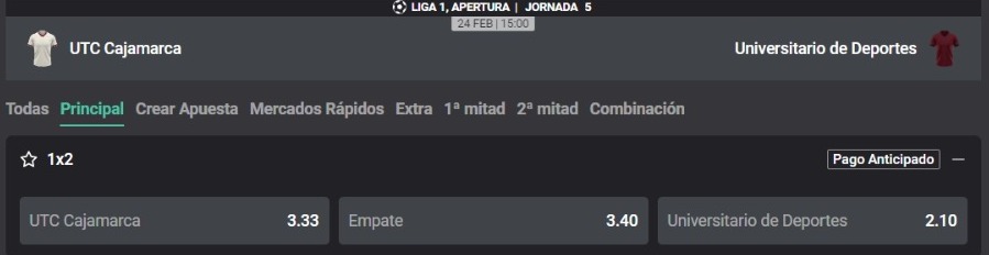 UTC recibirá a Universitario de Deportes por la fecha 5 del Torneo Apertura 2024. El cuadro cajamarquino ganó sus tres primeros encuentros y conoció la derrota en la última fecha cuando cayó por la mínima diferencia ante Alianza Atlético en Sullana. Por otro lado, el equipo ‘Merengue’ tiene puntaje perfecto y busca seguir en lo más alto del torneo.