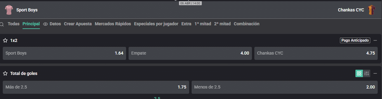 Por la fecha 7 del Torneo Apertura de la Liga 1, Sport Boys recibe este domingo 6 de abril a Chankas en el estadio Miguel Grau del Callao. A continuación, conoce toda la información para apostar con las cuotas que te trae Atlantic City.