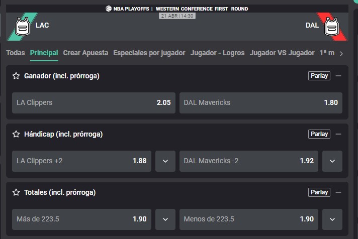 Por la primera ronda de los Play Offs de la NBA se enfrentan Los Angeles Clippers ante los Dallas Mavericks para avanzar en la postemporada de la liga americana de básquetbol. Ambas escuadras ganaron en la ronda de los Play In y ambas escuadras conforman la Conferencia Oeste. A continuación, conoce las cuotas que trae Atlantic City y toda la información para realizar la mejor apuesta.